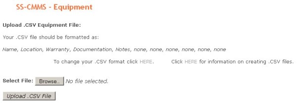 SS-CMMS - Uploading .CSV Equipment Files